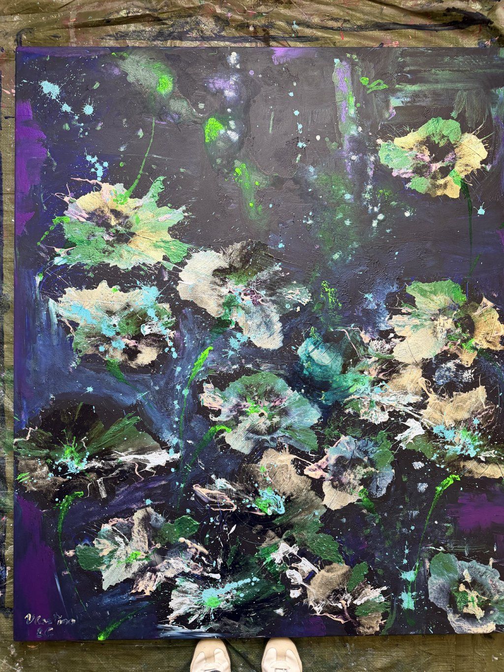 Akryl na plátně / 120 x 140 cm / Noční lekníny